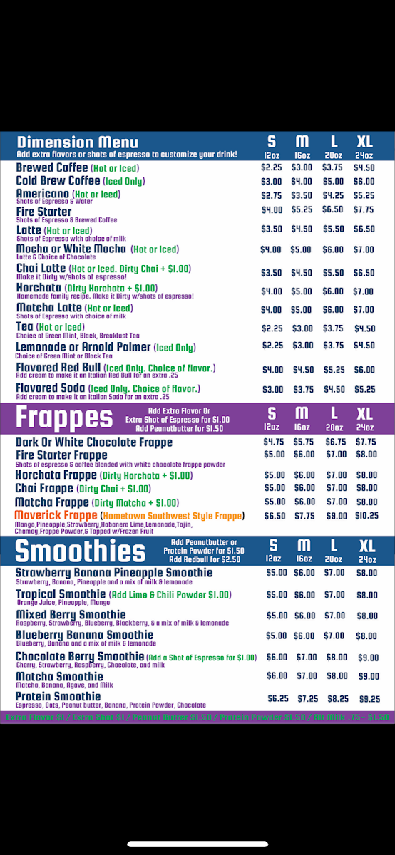 Introducing Dimension Coffee, a delightful coffee shop nestled in Lordsburg, NM. This charming establishment boasts a vibrant atmosphere and an impressive menu that delights every visitor. Known for their unique offerings, the spiked horchata frappe and indulgent iced mocha have quickly become fan favorites, earning praise for their rich flavors and creative twists. Guests often rave about the inviting ambiance, adorned with personality and a friendly orange mascot that adds a splash of whimsy to your coffee experience. Each visit promises quick service and reasonable prices without sacrificing quality. Despite a few mixed reviews on pastries, the overall consensus highlights exceptional coffee and a warm, local vibe. Whether you're a traveler on a coffee quest or a local looking for a cozy pit stop, Dimension Coffee is undoubtedly a gem that deserves a spot on your must-visit list. Come experience the spirited charm and delightful brews for yourself!